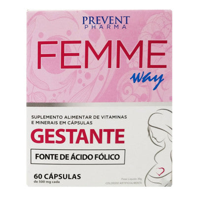 Femme Way Gestante - Suplemento alimentar de vitaminas e minerais para a saúde do bebê - Auxilia na formação do tubo neural do feto durante a gravidez - Auxilia no funcionamento do sistema imune - Auxilia na formação de colágeno - Auxilia na proteção dos danos causados pelos radicais livres - Contribui para a manutenção do cabelo peles e unhas.