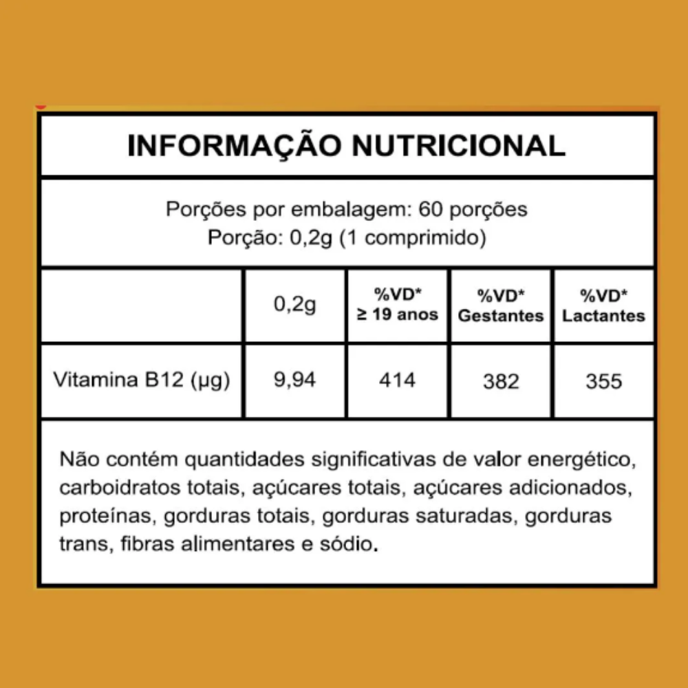 Indicado para: pessoas com deficiência de B12, vegetarianos, veganos ou quem deseja suporte extra para energia e bem-estar.