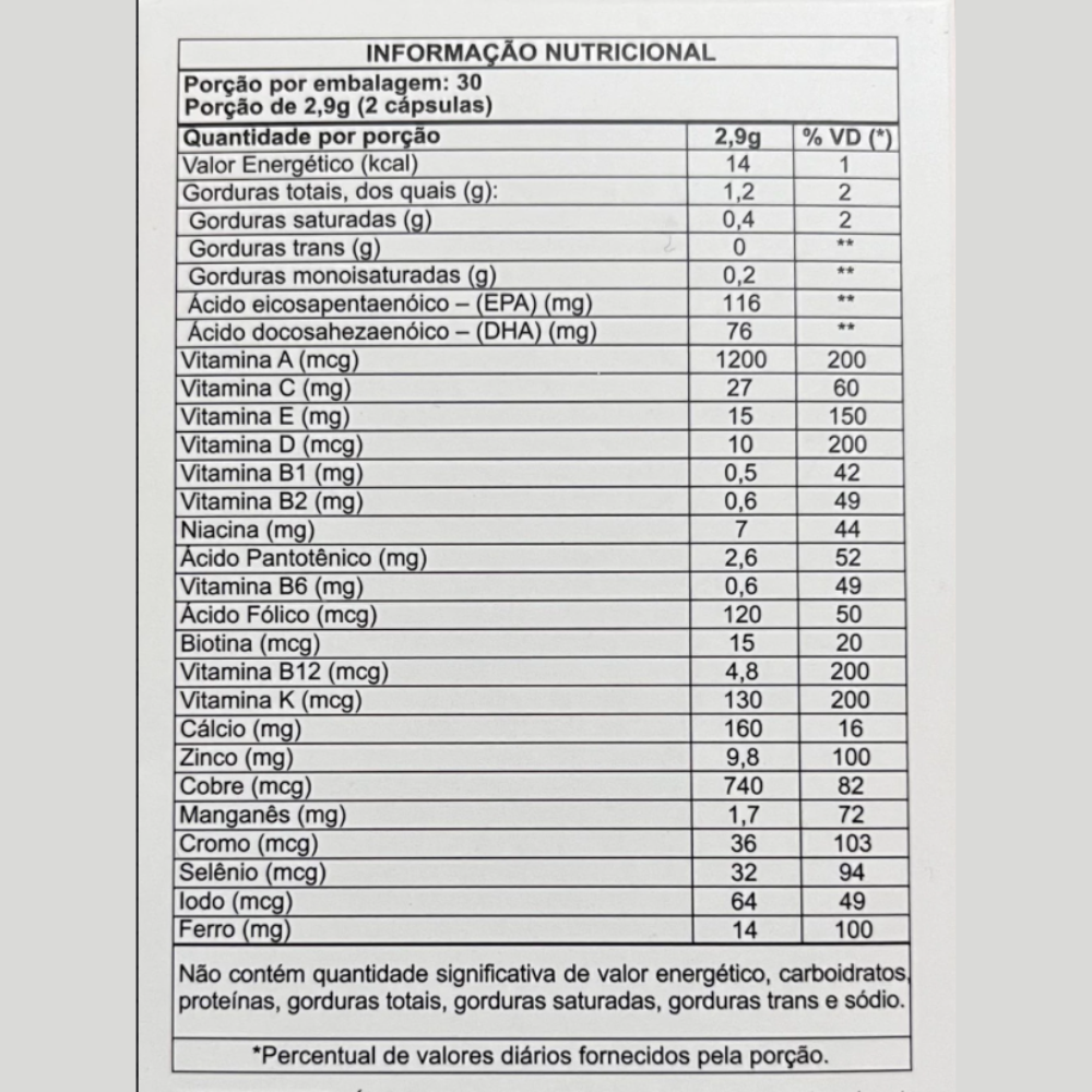 Complementa a alimentação quando há dietas restritas, pouca ingestão de peixe/óleos ricos em ômega ou menor variedade alimentar.